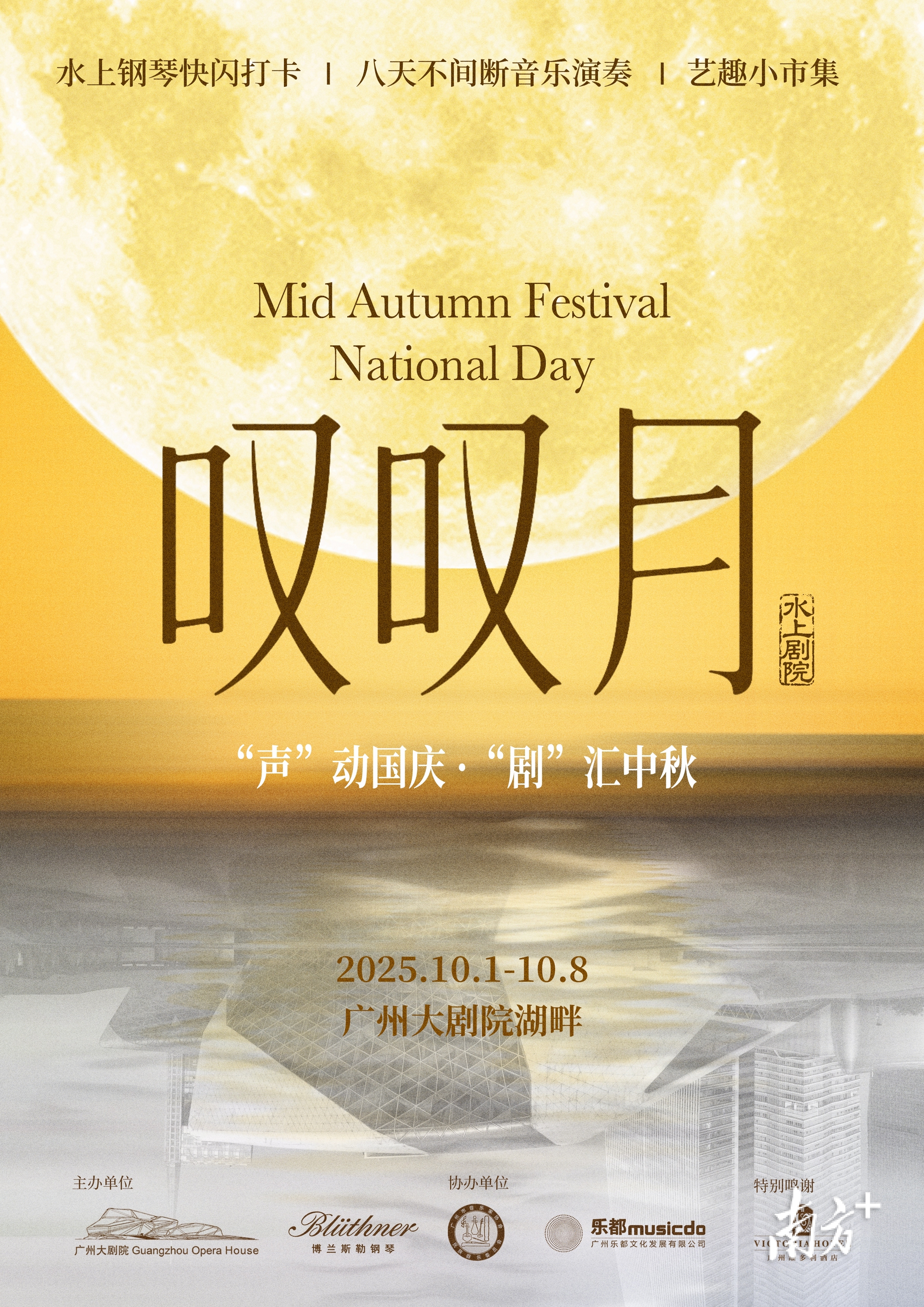 长假期间,广州大剧院携手德国百年钢琴品牌博兰斯勒,在广州大剧院人工小湖畔特别推出 “叹叹月 —— 声动国庆・剧汇中秋” 系列活动。水上舞台演出、创意市集、手工体验、猜灯谜、打卡抽奖,五大精彩活动,八天不间断的欢乐和浪漫,在鳞次栉比的珠江新城腹地,动听的音乐和皎洁的月光交织成一幅流动的城市画卷。